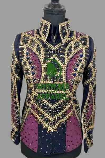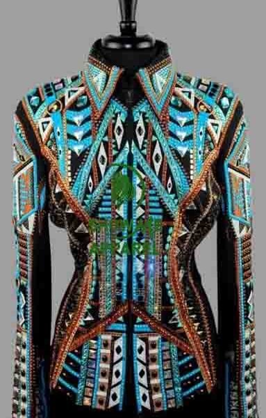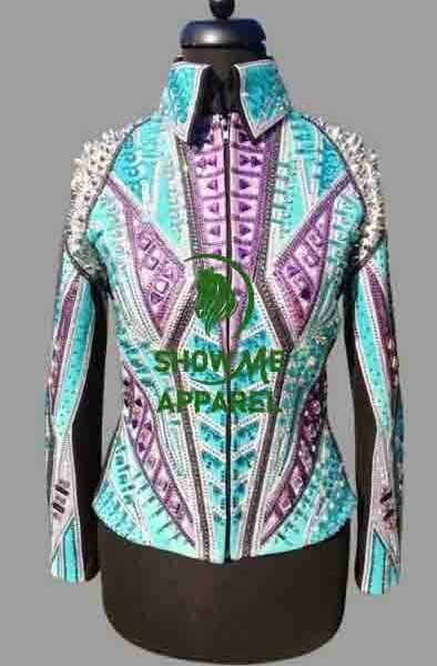 Showmanship Jacket with base stretchable fabric. Unique Jewel pieces, with Front hidden zipper S-Jac-16