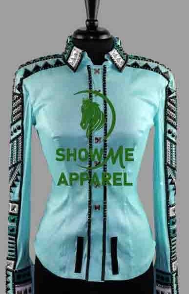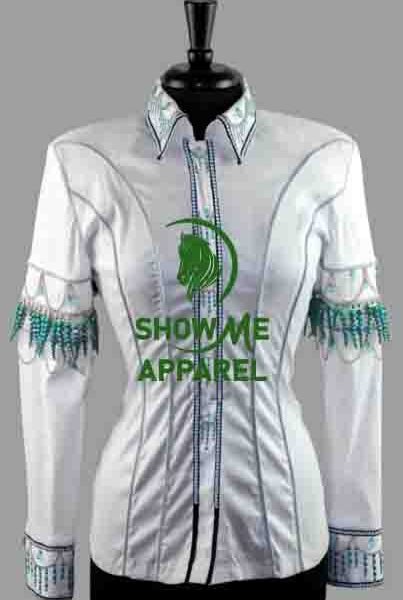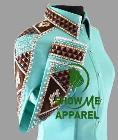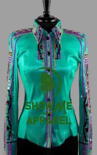 Retro Show Shirt with Taffeta stretchable fabric. Unique Jewel pieces, with Front hidden zipper gold nail finished. Shirt-16