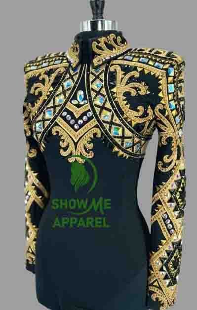 This stunning jacket, made by SHOW ME APPAREL in India, is perfect for any western horse show event. The attention to detail and quality of this jacket is unmatched, making it a must-have for any equestrian enthusiast. The jacket features a beautiful design that is sure to turn heads, and the comfortable fit allows for a full range of motion during your performance. With its timeless style and superior craftsmanship, this jacket is sure to be a showstopper in any arena. Don’t miss out on the opportunity to add this horsemanship jacket to your collection.