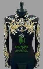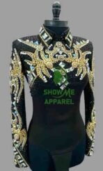This stunning jacket, made by SHOW ME APPAREL in India, is perfect for any western horse show event. The attention to detail and quality of this jacket is unmatched, making it a must-have for any equestrian enthusiast. The jacket features a beautiful design that is sure to turn heads, and the comfortable fit allows for a full range of motion during your performance. With its timeless style and superior craftsmanship, this jacket is sure to be a showstopper in any arena. Don’t miss out on the opportunity to add this horsemanship jacket to your collection.