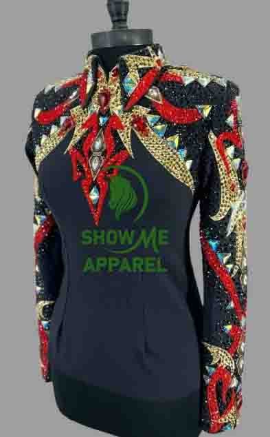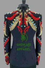 Horsemanship Jacket with Black base stretchable fabric. Unique Jewel pieces, with back hidden zipper Jac-10