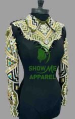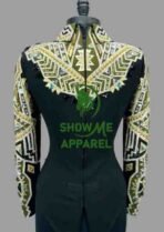 This stunning jacket, made by SHOW ME APPAREL in India, is perfect for any western horse show event. The attention to detail and quality of this jacket is unmatched, making it a must-have for any equestrian enthusiast. The jacket features a beautiful design that is sure to turn heads, and the comfortable fit allows for a full range of motion during your performance. With its timeless style and superior craftsmanship, this jacket is sure to be a showstopper in any arena. Don’t miss out on the opportunity to add this horsemanship jacket to your collection.