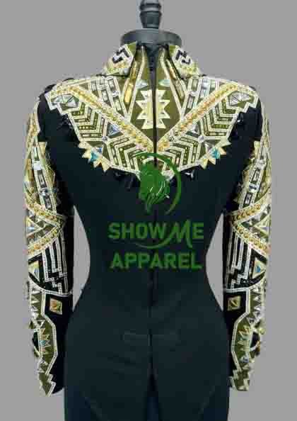 Horsemanship Jacket with Black base stretchable fabric. Unique Jewel pieces, with back hidden zipper Jac-11