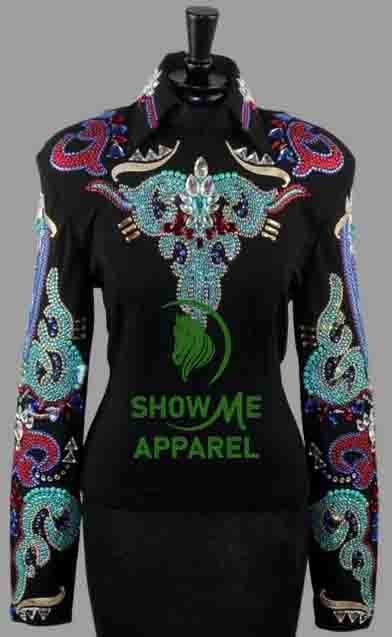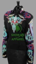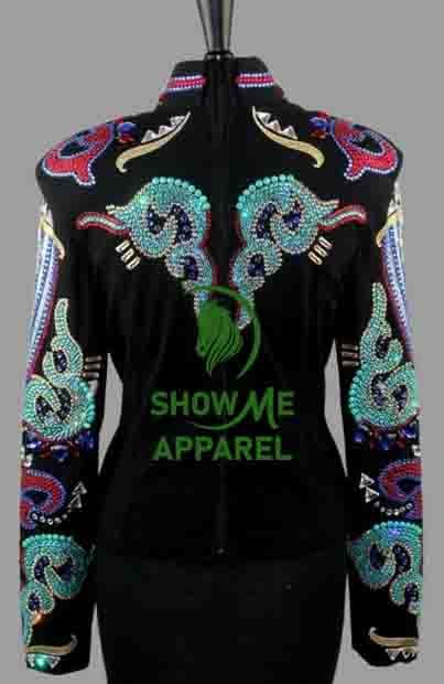 Horsemanship Jacket with Black base stretchable fabric. Unique Jewel pieces, with back hidden zipper Jac-12