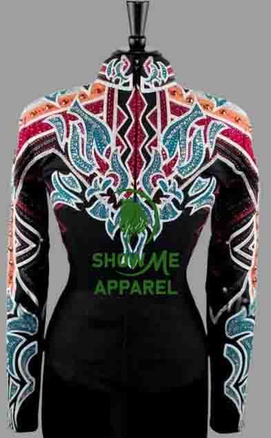 Horsemanship Jacket with Black base stretchable fabric. Unique Jewel pieces, with back hidden zipper Jac-22