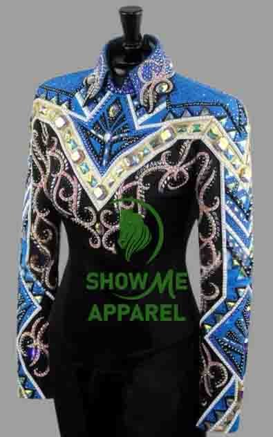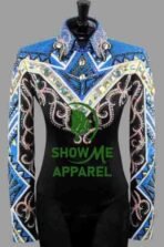 This stunning jacket, made by SHOW ME APPAREL in India, is perfect for any western horse show event. The attention to detail and quality of this jacket is unmatched, making it a must-have for any equestrian enthusiast. The jacket features a beautiful design that is sure to turn heads, and the comfortable fit allows for a full range of motion during your performance. With its timeless style and superior craftsmanship, this jacket is sure to be a showstopper in any arena. Don’t miss out on the opportunity to add this horsemanship jacket to your collection.