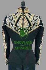 This stunning jacket, made by SHOW ME APPAREL in India, is perfect for any western horse show event. The attention to detail and quality of this jacket is unmatched, making it a must-have for any equestrian enthusiast. The jacket features a beautiful design that is sure to turn heads, and the comfortable fit allows for a full range of motion during your performance. With its timeless style and superior craftsmanship, this jacket is sure to be a showstopper in any arena. Don’t miss out on the opportunity to add this horsemanship jacket to your collection.