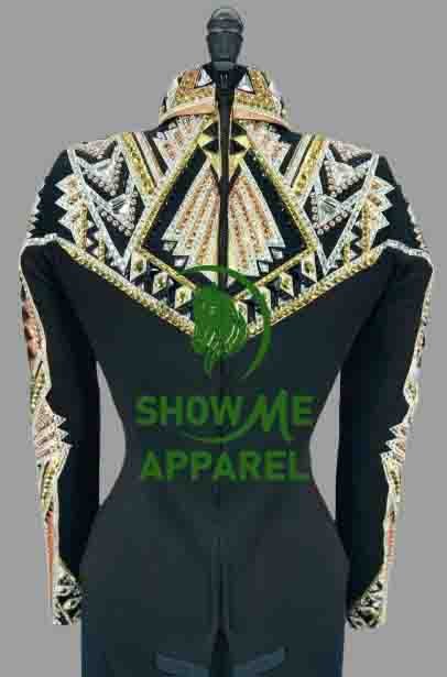 Horsemanship Jacket with Black base stretchable fabric. Unique Jewel pieces, with back hidden zipper Jac-26