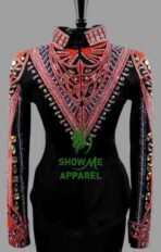 This stunning jacket, made by SHOW ME APPAREL in India, is perfect for any western horse show event. The attention to detail and quality of this jacket is unmatched, making it a must-have for any equestrian enthusiast. The jacket features a beautiful design that is sure to turn heads, and the comfortable fit allows for a full range of motion during your performance. With its timeless style and superior craftsmanship, this jacket is sure to be a showstopper in any arena. Don’t miss out on the opportunity to add this horsemanship jacket to your collection.