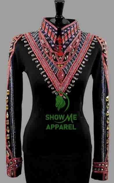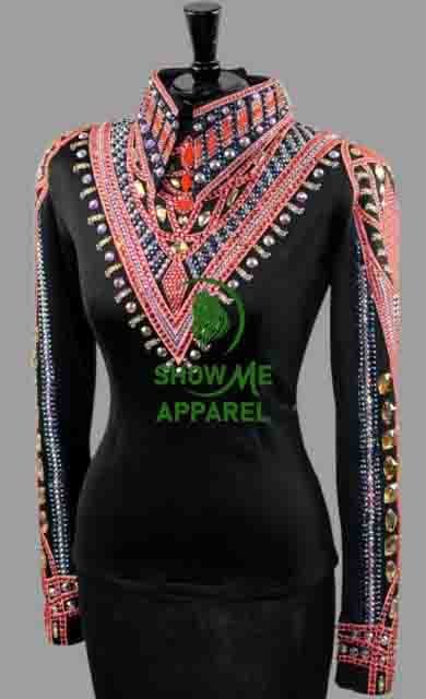 Horsemanship Jacket with Black base stretchable fabric. Unique Jewel pieces, with back hidden zipper Jac-28