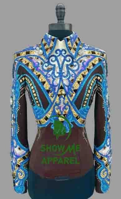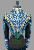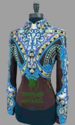 This stunning jacket, made by SHOW ME APPAREL in India, is perfect for any western horse show event. The attention to detail and quality of this jacket is unmatched, making it a must-have for any equestrian enthusiast. The jacket features a beautiful design that is sure to turn heads, and the comfortable fit allows for a full range of motion during your performance. With its timeless style and superior craftsmanship, this jacket is sure to be a showstopper in any arena. Don’t miss out on the opportunity to add this horsemanship jacket to your collection.