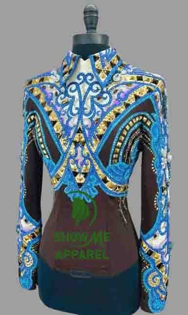 Horsemanship Jacket with Brown base stretchable fabric. Unique Jewel pieces, with back hidden zipper – Jac-07