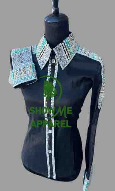 A gorgeous and professionally tailored Western Show shirtt perfect for horse-riding or horse shows.