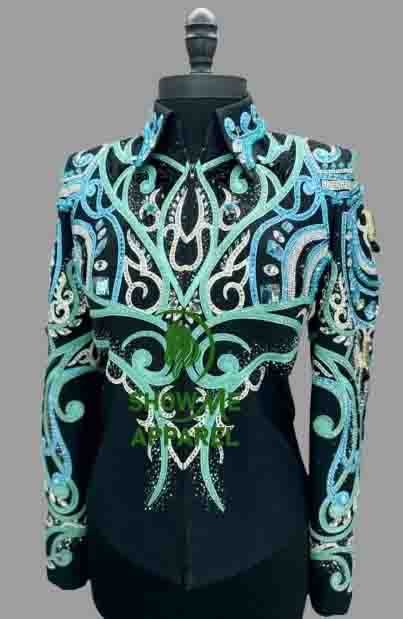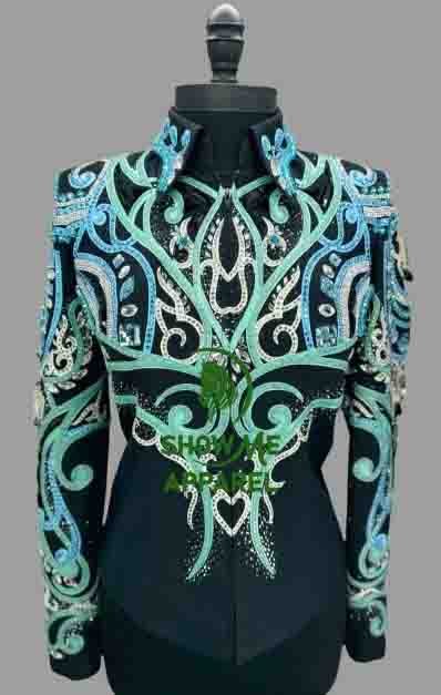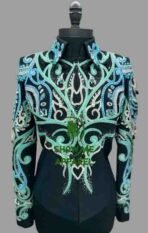 This stunning jacket, made by SHOW ME APPAREL in India, is perfect for any western horse show event. The attention to detail and quality of this jacket is unmatched, making it a must-have for any equestrian enthusiast. The jacket features a beautiful design that is sure to turn heads, and the comfortable fit allows for a full range of motion during your performance. With its timeless style and superior craftsmanship, this jacket is sure to be a showstopper in any arena. Don’t miss out on the opportunity to add this horsemanship jacket to your collection.