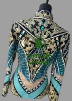 This stunning jacket, made by SHOW ME APPAREL in India, is perfect for any western horse show event. The attention to detail and quality of this jacket is unmatched, making it a must-have for any equestrian enthusiast. The jacket features a beautiful design that is sure to turn heads, and the comfortable fit allows for a full range of motion during your performance. With its timeless style and superior craftsmanship, this jacket is sure to be a showstopper in any arena. Don’t miss out on the opportunity to add this horsemanship jacket to your collection.