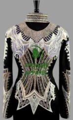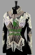 Be the first to review “Showmanship Jacket with Black base stretchable fabric. Unique Jewel pieces, with Front hidden zipper S-Jac-31”