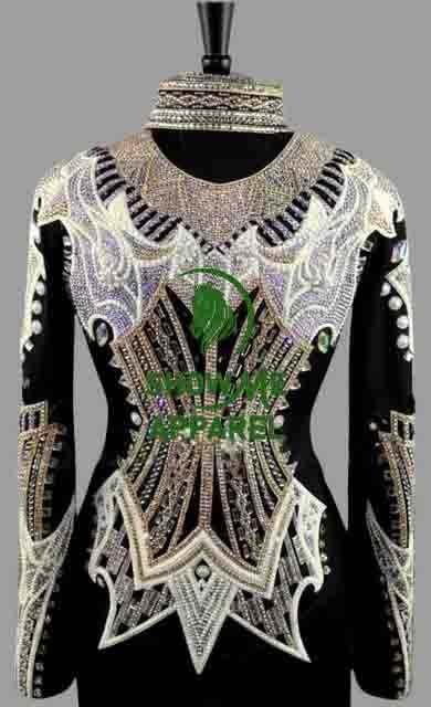 Showmanship Jacket with Black base stretchable fabric. Unique Jewel pieces, with Front hidden zipper S-Jac-31